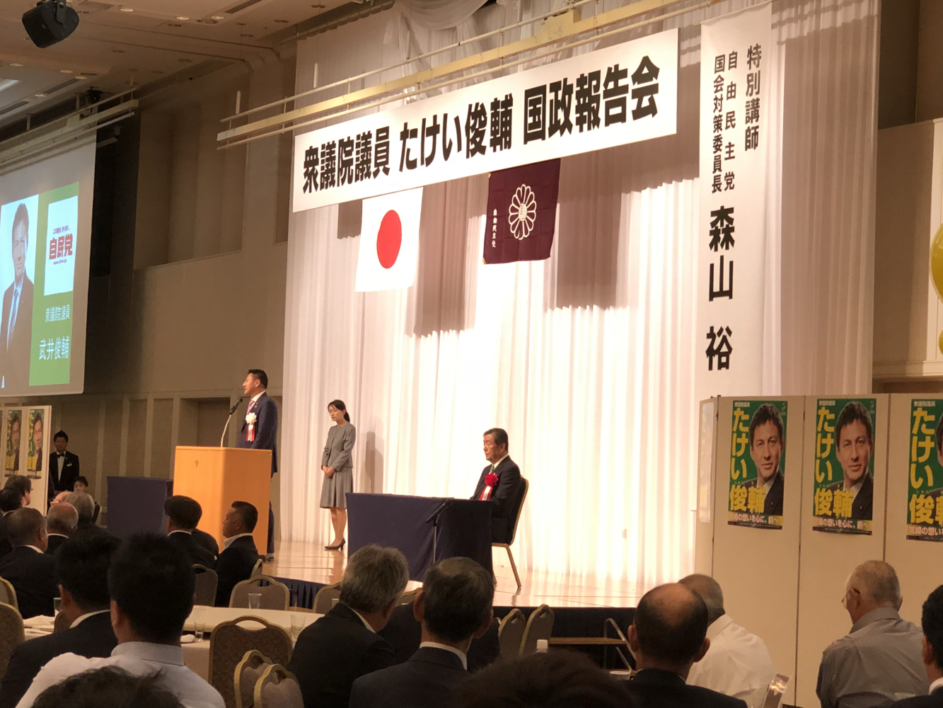 7月14日(金)、シーガイアコンベンションセンター サミットホールにおいて「衆議院議員 たけい俊輔 国政報告会」を開催しました。