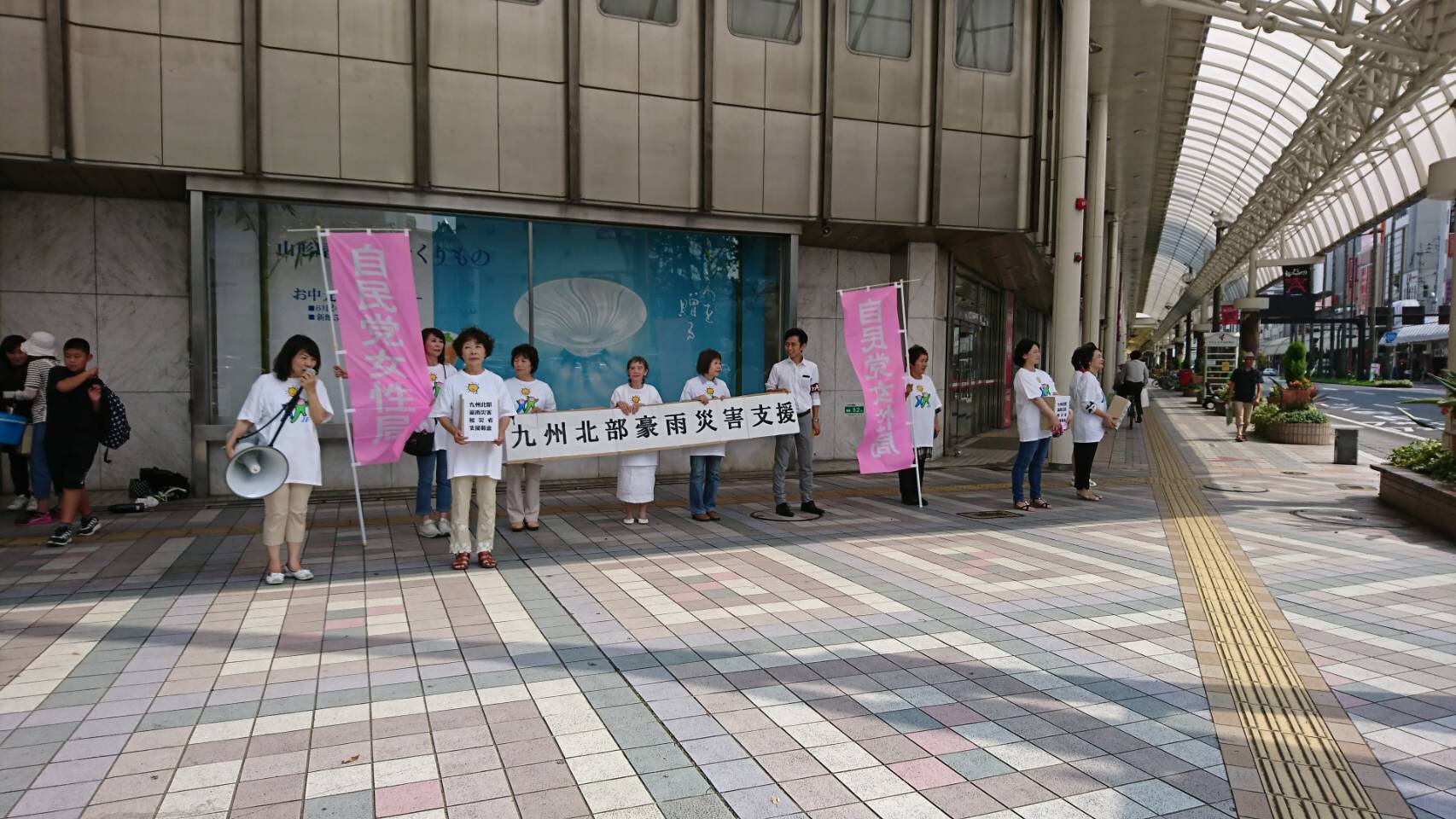 7月23日(日)、女性局主催にて「九州北部豪雨災害支援」募金活動を宮崎山形屋前にて実施しました。